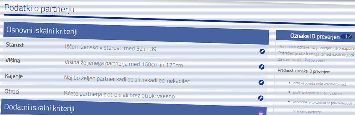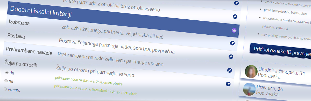 Izberite kriterije za željenega partnerja