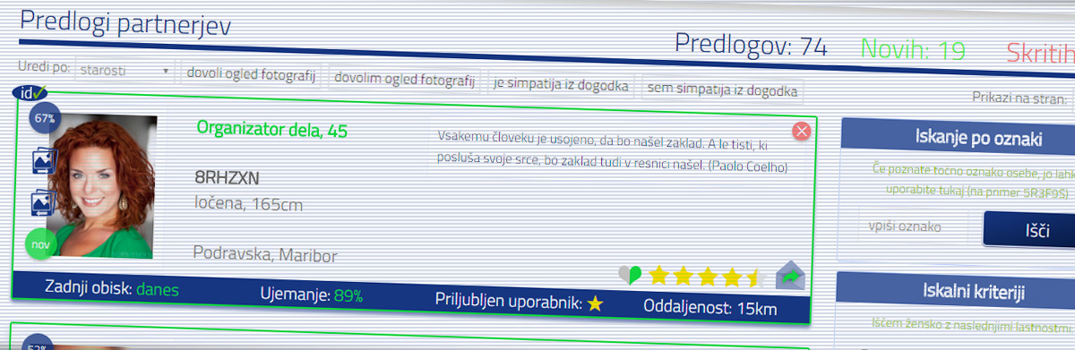 Med predlogi partnerjev sestavite svoj izbor, jih ocenite, shranite med priljubljene in vzpostavite stik z njimi.